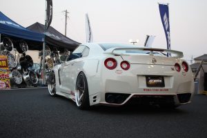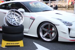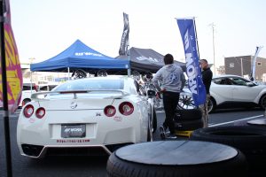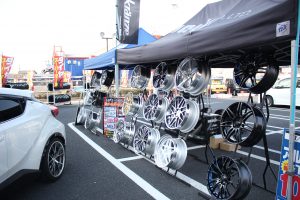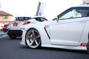 35GT-Rの横にワザワザWORKさんおすすめのホイールを展示してくれました