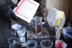 エアロカーレジンに硬化剤を加えます