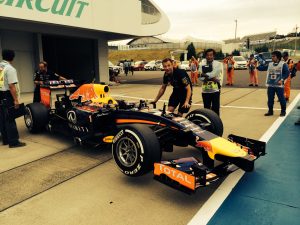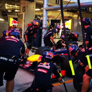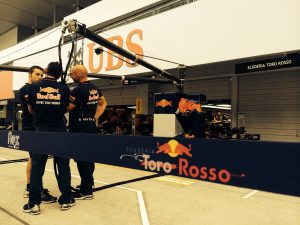 タイヤ交換の練習風景 カッコイイですね~これぞF1 トロロッソピットでは何やらひそひそ話中
